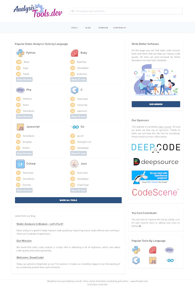 Oh wait! …before you leave, would you mind checking out analysis-tools.dev and smashing that upvote button for a few tools you like? Hey, and if you feel super generous today (or you have a fabulous employer that cares about open-source), why not check out our sponsorship page?